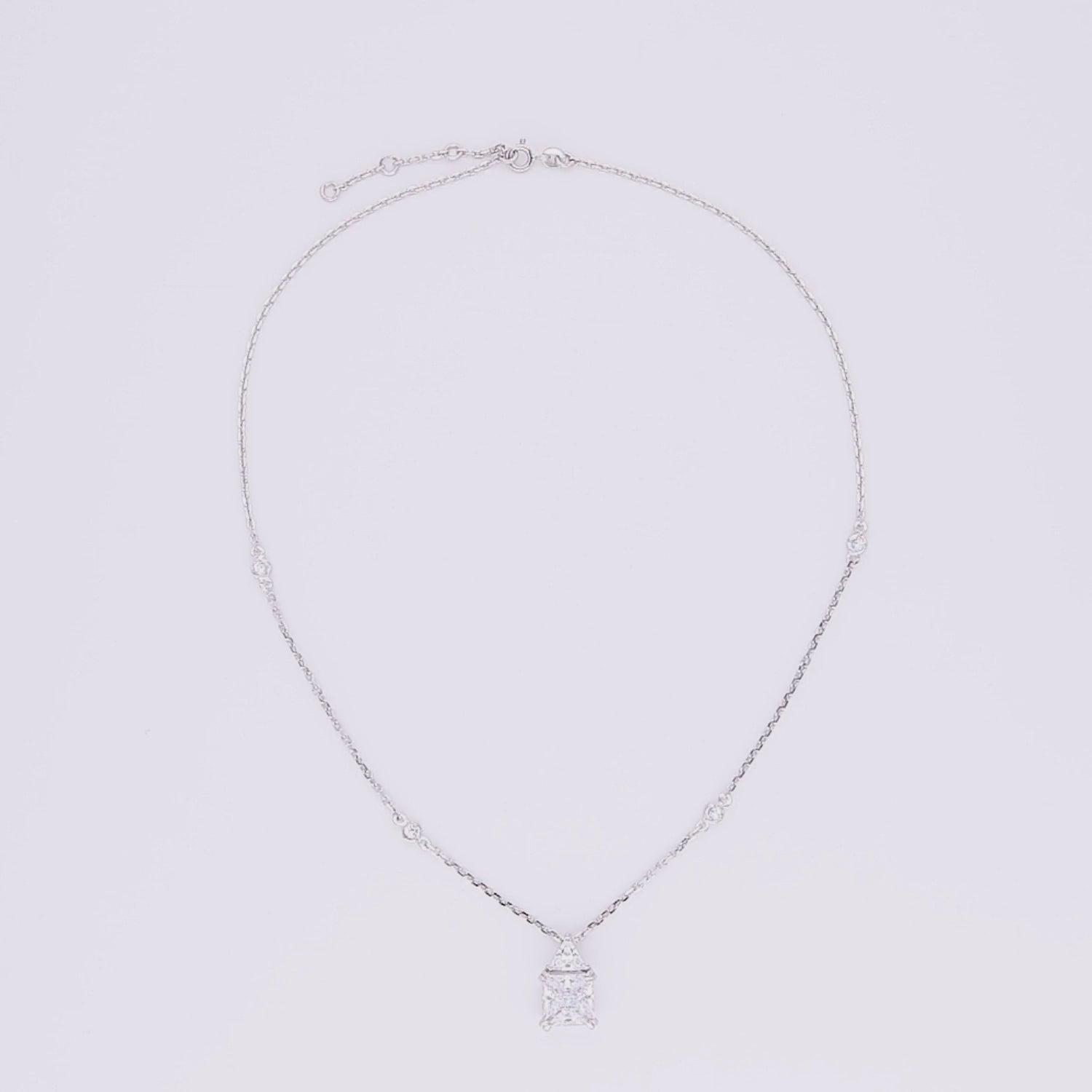 The pendant showcases a remarkable geometric design, with a prominent, radiant gemstone that catches the light beautifully. The minimalist style of the necklace, enhanced by subtle accents along the chain, offers a timeless aesthetic suitable for both everyday wear and special occasions. Embrace the refined beauty of the Nivriti Cascade Necklace, perfect for gifting or adding a touch of elegance to your own collection.